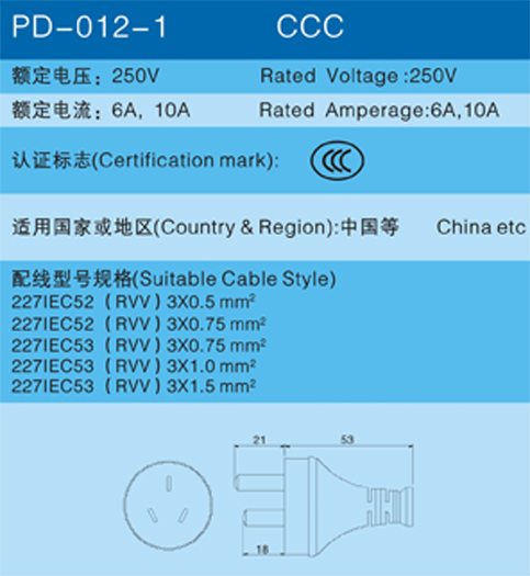 產品名稱:國標交流電源線/CCC AC POWER CORDS